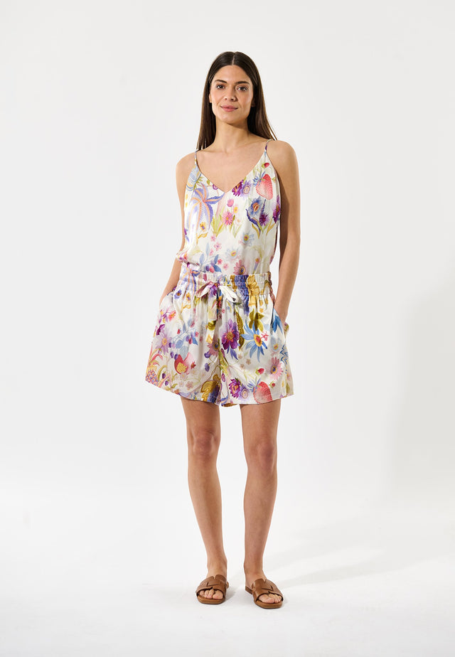 A camisole top is an essential and versatile part of any wardrobe. This regular fit version in a floral silk print is suspended from adjustable spaghetti straps and is half lined in self fabric for a luxurious touch.