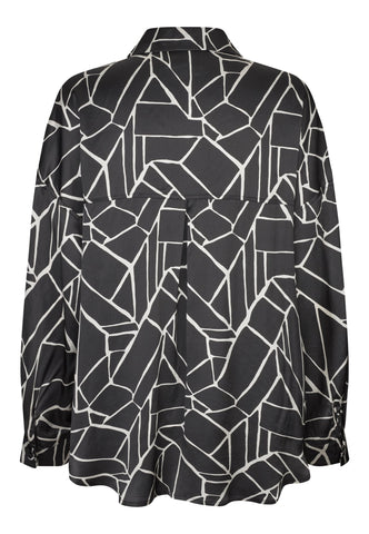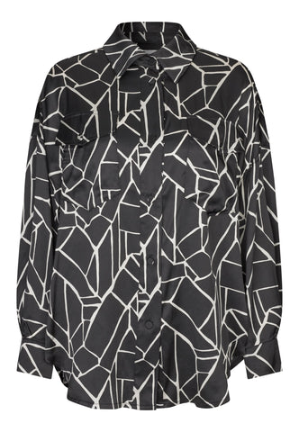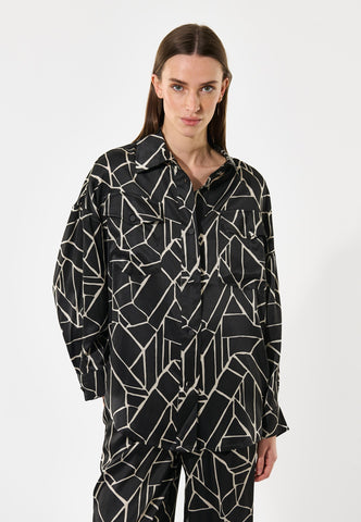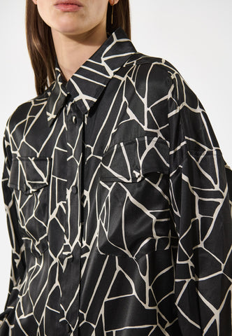 Relaxed and easy going yet still very chic, this silk shirt in an abstract oversized monochrome print can be dressed up or dressed down. Flap pockets at the chest and tiny covered buttons add to its sophisticated appeal.