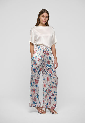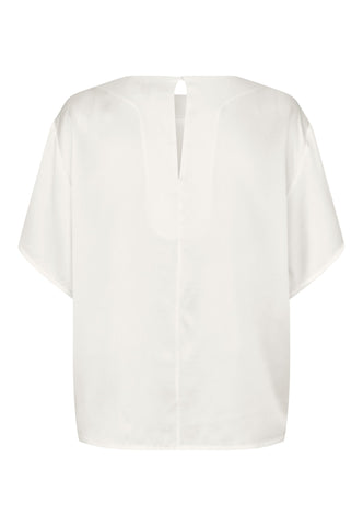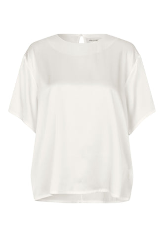 The pure minimalism of a simple t-shirt in white silk speaks for itself. Luxurious, elegant and timeless, it is in a generous fit with loose sleeves and closes with a single button and loop at the back neck. This top works perfectly under a blazer, paired with a skirt or even worn with jeans.