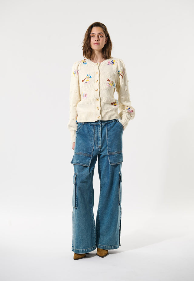 With their multiple flap pockets, these cargo trousers have a cool urban vibe. Made from light, vintage-look denim, they are fitted on the hips before dropping into a wide leg and have a logo on the back pocket and a signature logo inner waistband.