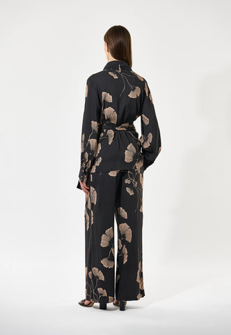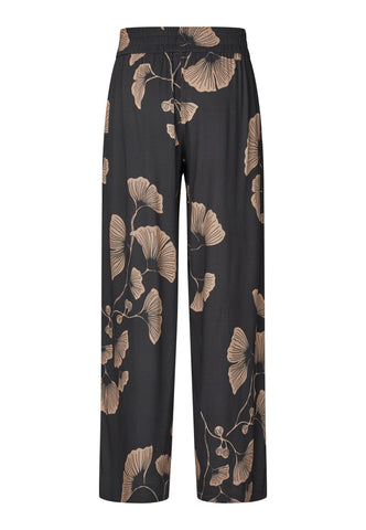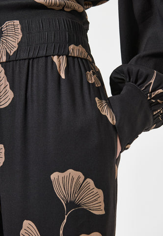 Wide leg pants in a fluid fabric like this viscose crepe have a timeless appeal and this pair in gingko leaf print with a wide elastic waistband are a great example. Wear with a simple top or a knit for an effortlessly chic outfit.