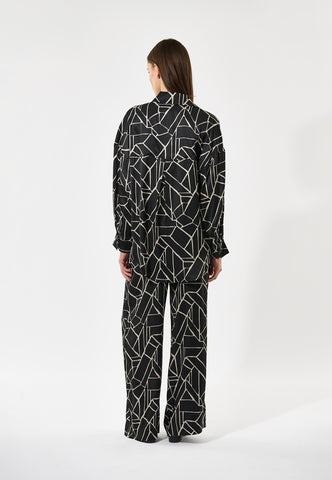 Wide leg pants in silk have a timeless appeal and this pair in a bold black and white print with a wide elastic waistband are a great example. Wear with a simple top or a knit for an effortlessly stylish outfit.