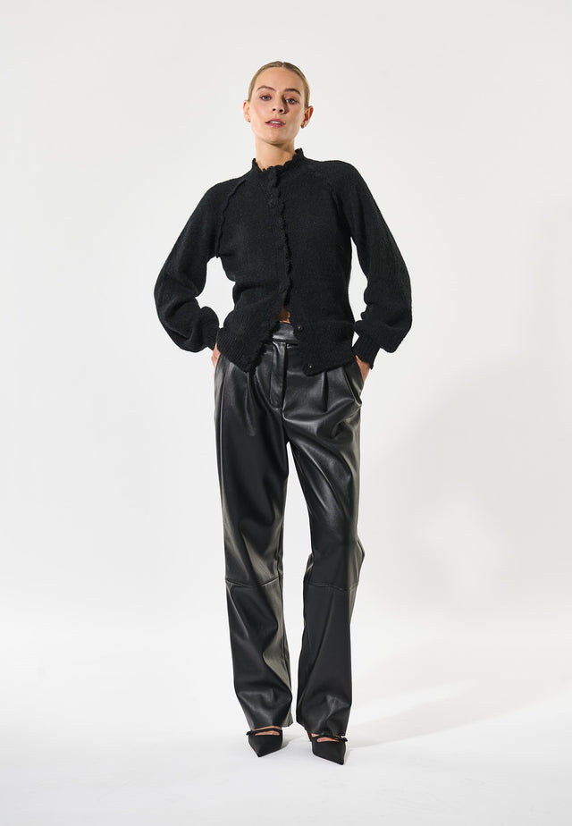 Delicate scalloping traces the front, shoulder seams, cuffs and high neck on this cosy but chic cardigan made from alpaca mix yarn. Fitting close to the body, it has deep ribs at the cuffs and waist and it fastens with beautiful crocheted buttons.
