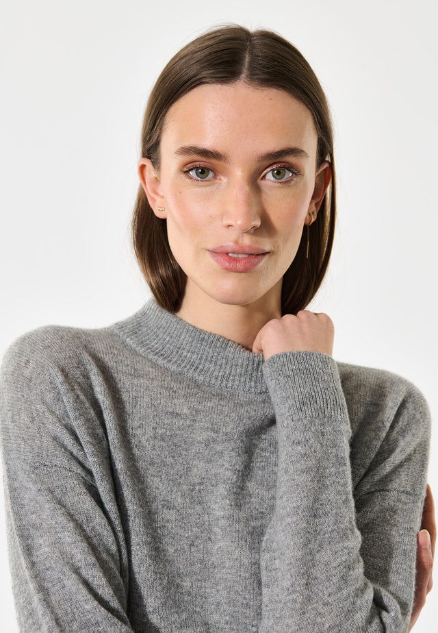 A round neck sweater in cashmere is an absolute wardrobe classic: versatile, timeless and very luxurious. This version in grey has rib at the neck, hem and cuff and a small embroidered logo at the centre back neck.