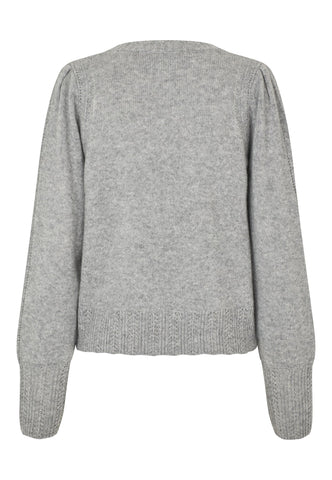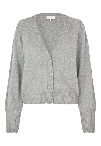 Luxurious, cosy and very chic, this 100% cashmere grey cardigan looks as good as it feels. Different fancy and lace stitches appear in the rib at the hem and cuffs, creating a subtle and sophisticated detail and knit covered buttons are the perfect finishing touch.