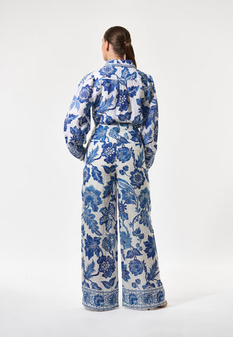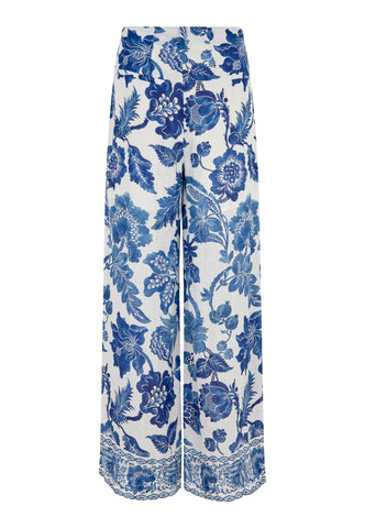 With their high waist, wide legs and bold floral print, these trousers in premium linen are the ultimate in summer chic. Two side pockets and two back pockets give them a sense of ease and a contrast border at the hem is a luxurious finishing touch..