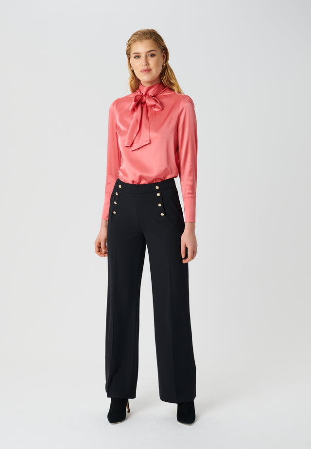 Two rows of buttons give a stylish military detail to these slimline pants. The black viscose crepe fabric gives versatility and comfort making them perfect for both day and evening. The pants are made from 97% stretch viscose crepe and 3 % elastane.