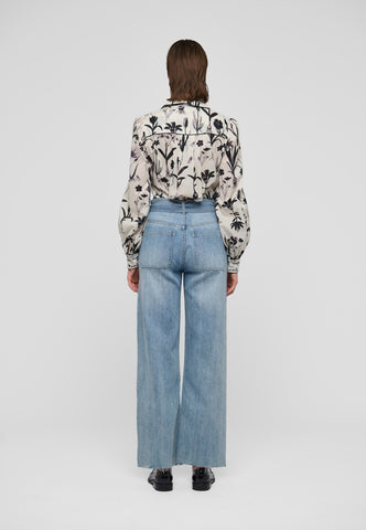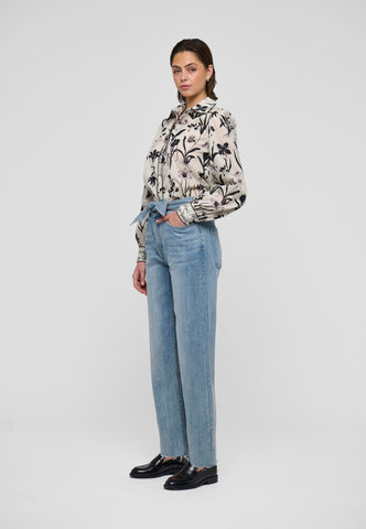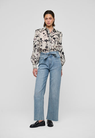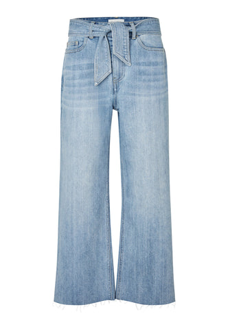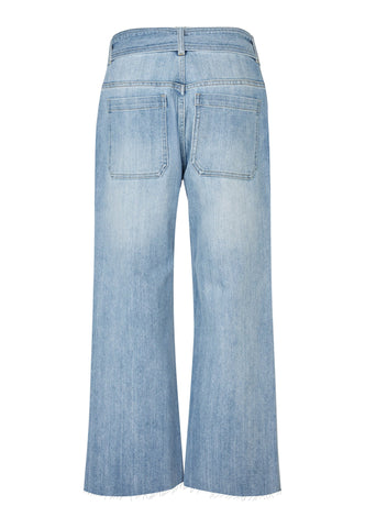 A stylish and creative take on a pair of jeans, this version in pale denim have straight legs that are slightly cropped to the ankle, western style pockets and a self fabric tie belt.