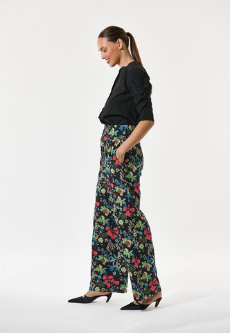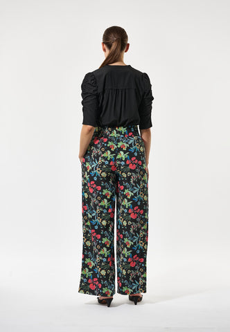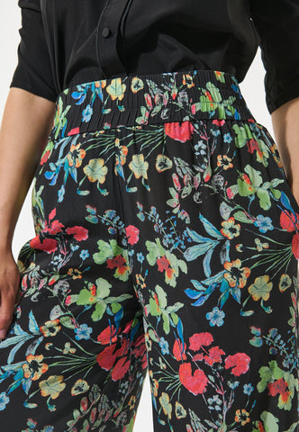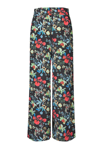Wide leg pants in silk are a classic summer style and this pair in a bold floral print with a wide elastic waistband are a beautiful example. Wear with a simple top or a knit for an effortlessly chic outfit.