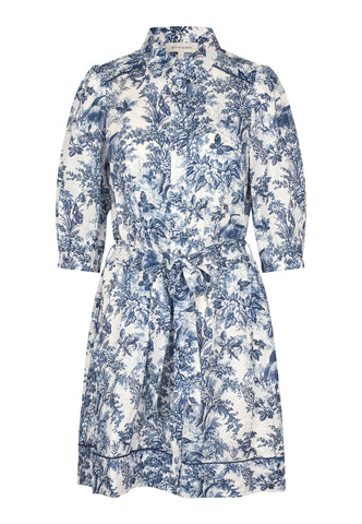 Relaxed and stylish for summer, this charming linen shirt dress in an intricate botanical print finishes just above the knee. A self fabric belt pulls in the waist and contrast piping at the hem and shoulders is a luxurious detail.