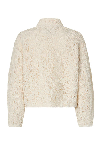 Minimal details on this beautiful jacket allow the stunning cream lace fabric make the real statement. Closed with a fly front and snap stud fastenings, the jacket has a stand collar, sculptural sleeves and is cropped to finish at the waist. To make a truly glamorous outfit, pair with matching Alma skirt.